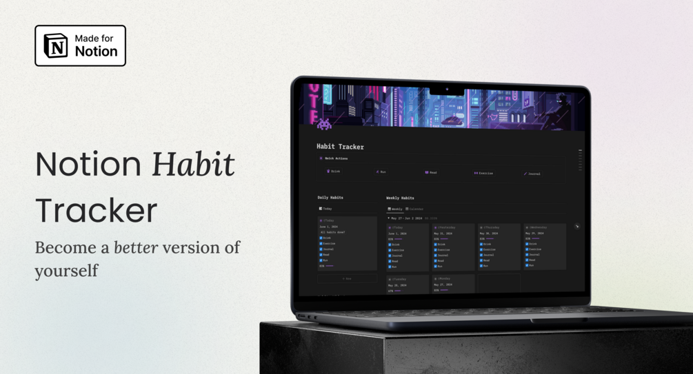 Habit Tracker $0+$0+https://schema.org/InStockusdSafaSafa12 ratingsTrack Your Daily Habits in NotionConsistency is the key to success! Track your habits to stay consistent and become 1% better everyday!Main features: Daily tracker Quick buttons Streak counter Habit stats Journal Cute widget Monthly reports Got any queries?Connect with me on Instagram or XName a fair price:$Add to cart699 downloadsTrack your habitsAccessLifetimeUpdatesIncludedAdd to wishlist New wishlistShareShare on XShare on Facebook Copy linkCopy product URLRatings5(12 ratings)1255 stars100%4 stars0%3 stars0%2 stars0%1 star0%
